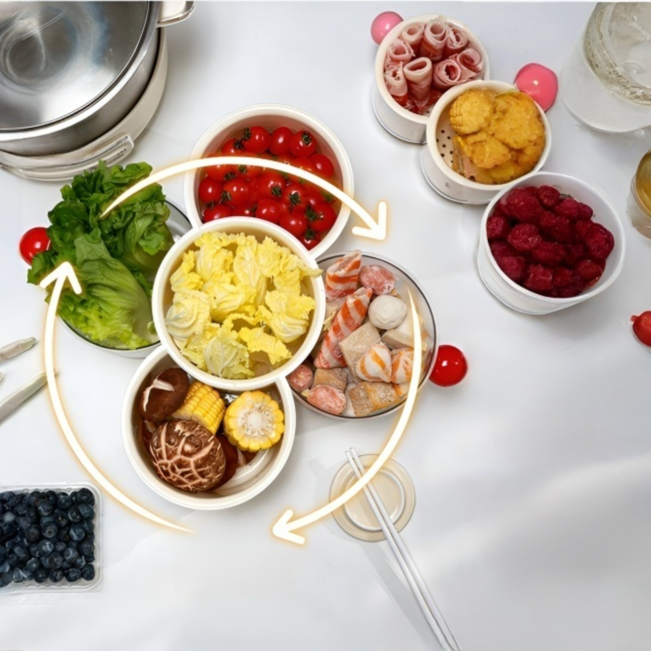 Farbe: Drehbares Hotpot-Beilagenteller - Klein (Milchweiß-Rot), Drehbares Hotpot-Beilagenteller - Klein (Milchweiß-Rosa), Drehbares Hotpot-Beilagenteller - Klein (Walnuss-Milchweiß)